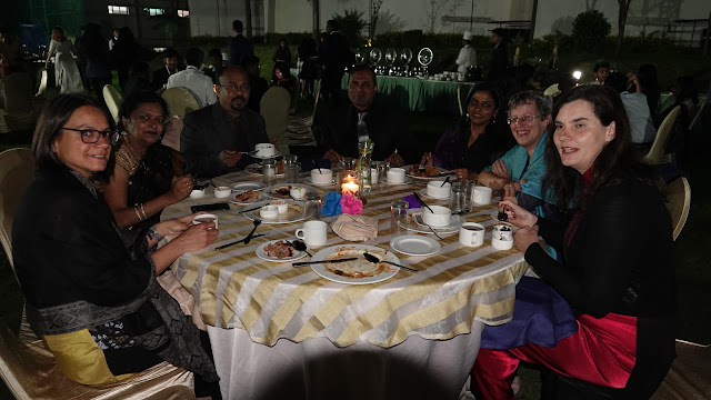 A tanévzáró után pedig, amikor a diákok elutaztak, mindig egy kedves alkalom, hogy az iskola techinkai dolgozóit és családjaikat megvendégeli az intézmény karácsonyi ajándékként, és ekkor az ún. professional staff (azaz tanárok, stb.) szolgálnak fel nekik, hogy értékeljük és megköszönjük egész éves munkájukat. Örültünk, hogy az idén ebben gyerekeink is részt vehettek, pl. Boró örömmel osztotta Barbival dobozból a papadamot.